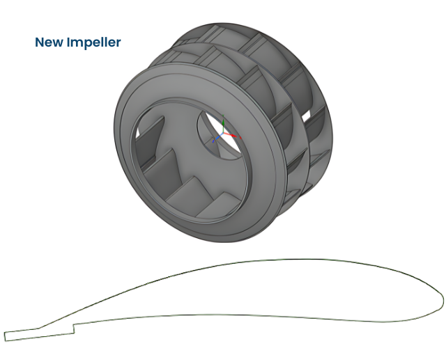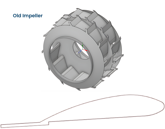 - The only drawback of the existing impeller was the separation vortex at the blade’s trailing edge, which negatively impacted performance.