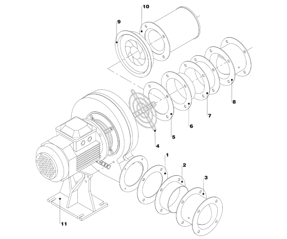 In standard execution, the fan can convey fluids up to a temperature of 80°C with a relative humidity of less than 80%.