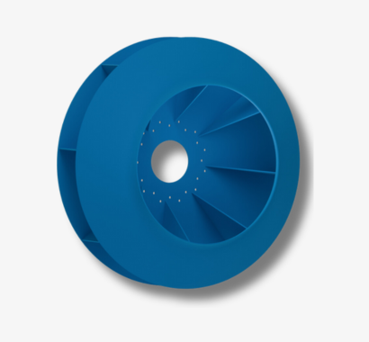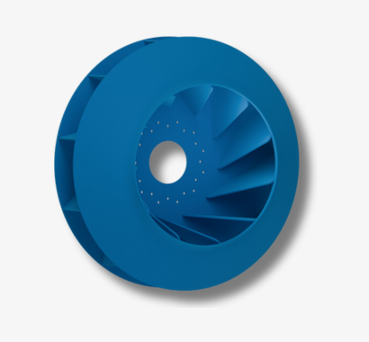 La roue KR est dotée de 8 pales radiales soudées à un cône à profil aérodynamique et au disque arrière.
